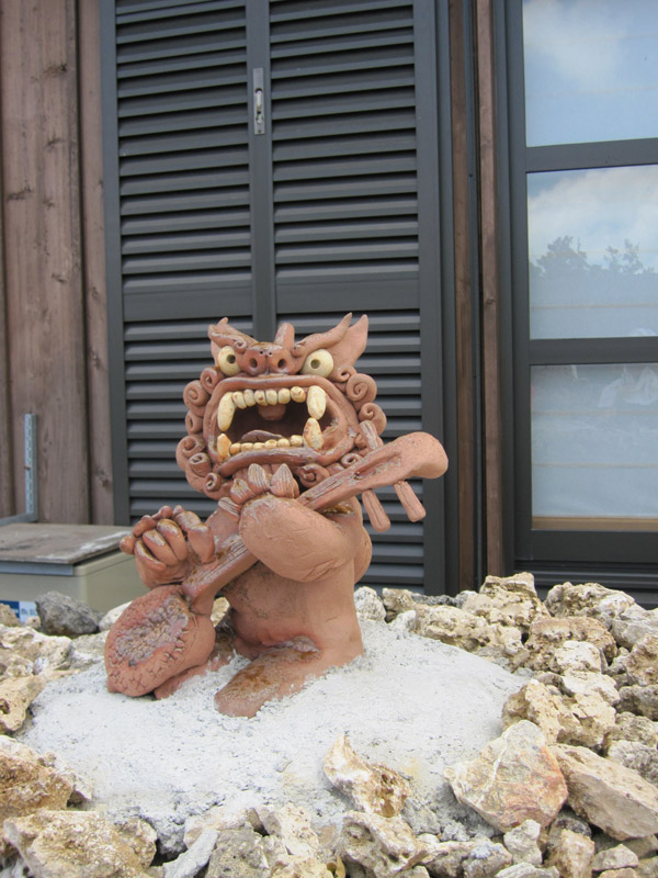 三線を弾くシーサー