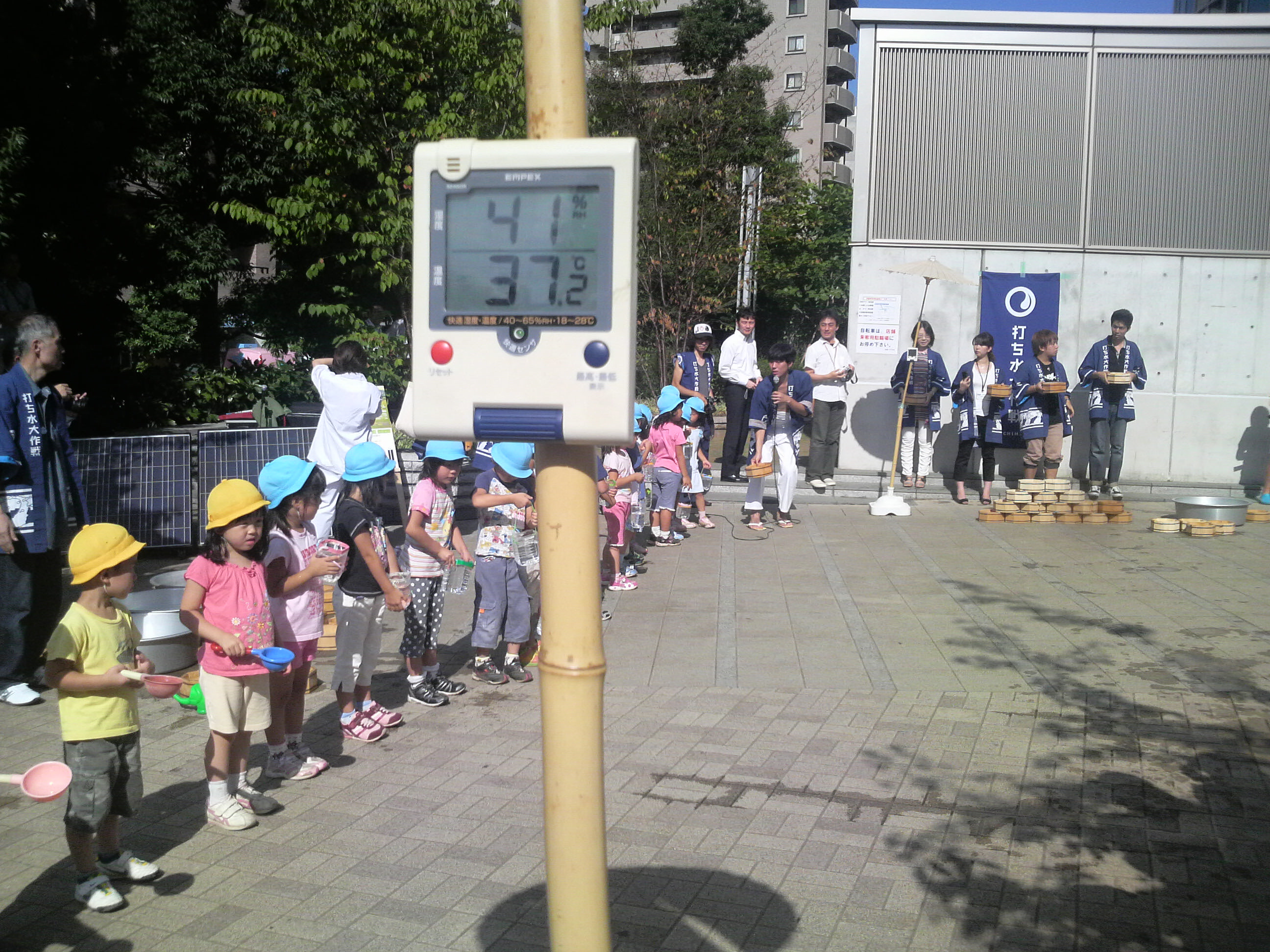 今日のニュースでは、東京タワーの下で「打ち水大作戦」をやったとのこと。