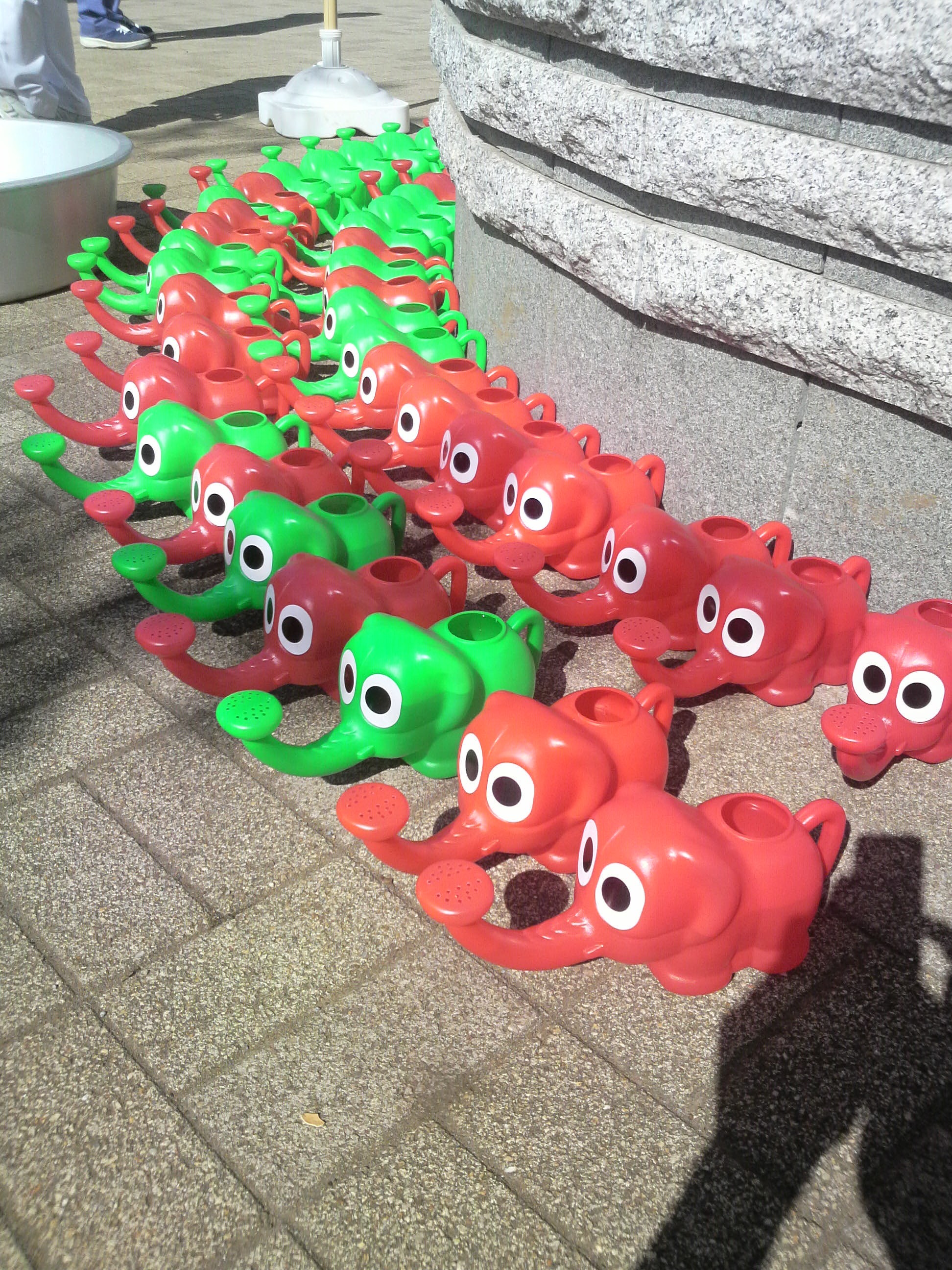 それでも、スタッフが「打ち水の風」と呼ぶらしい風(打ち水で生じる上昇気流に向けて流れ込んでくる風)が清々しく、気分の洗われるイベントだったなぁ☆